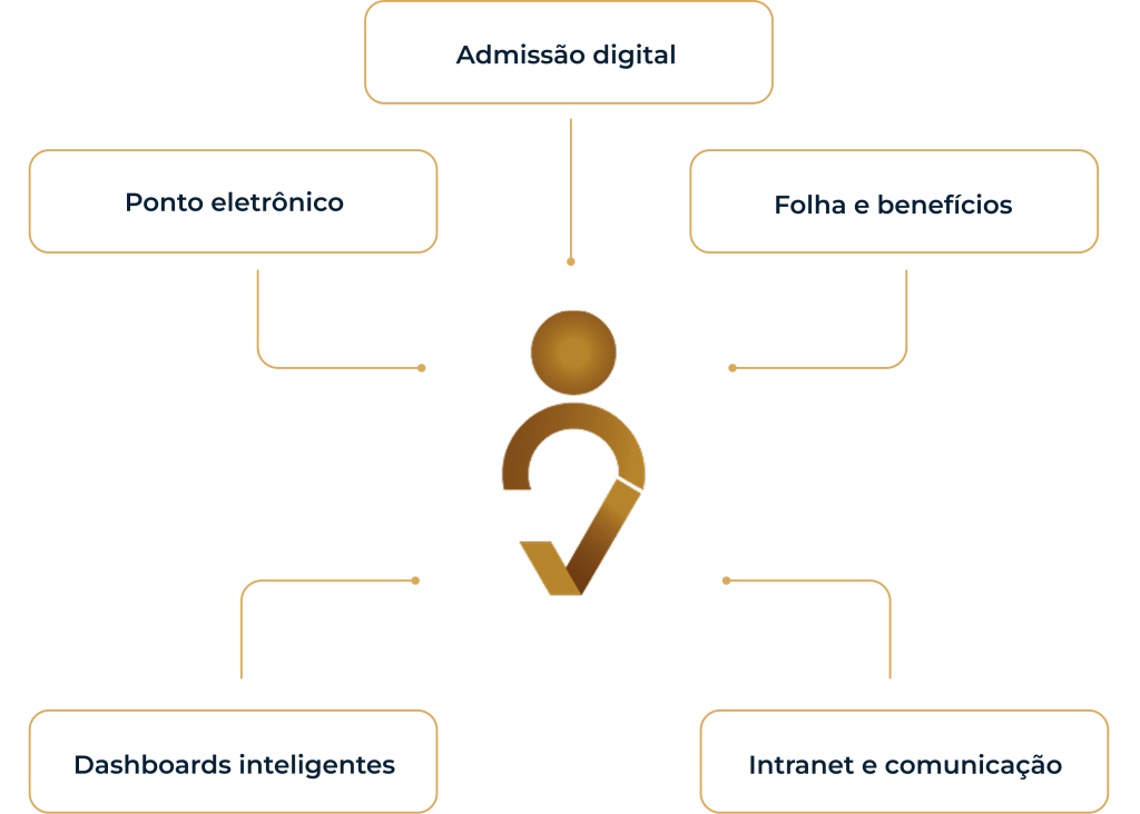 Digitaliza admissões, folha, férias e ponto, reduzindo tempo gasto com tarefas manuais.